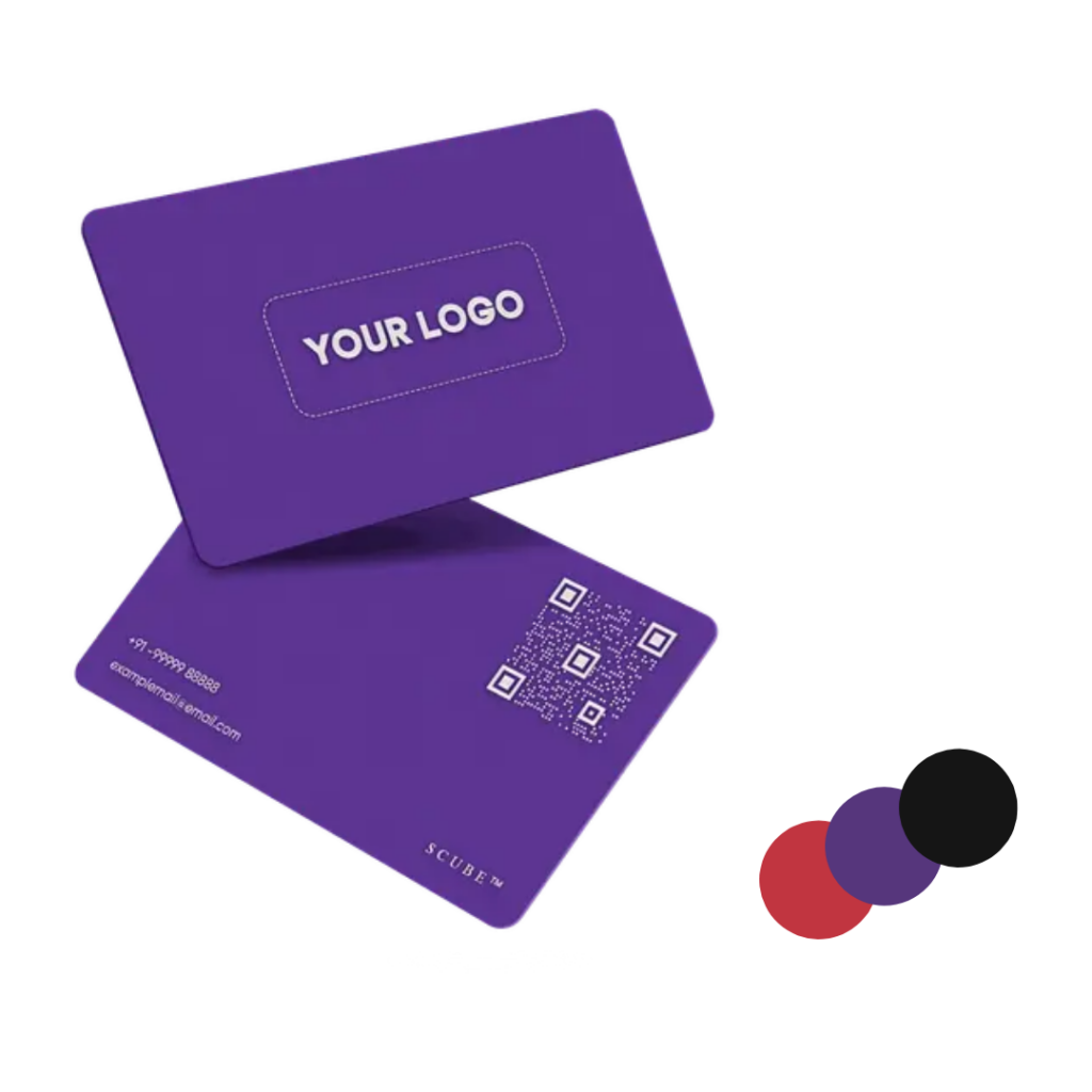 The Scube Business Card, embedded with an NFC chip, allows you to share and save your contact details by tapping it on smartphones. For non-NFC compatible phones, it also includes a QR Code.